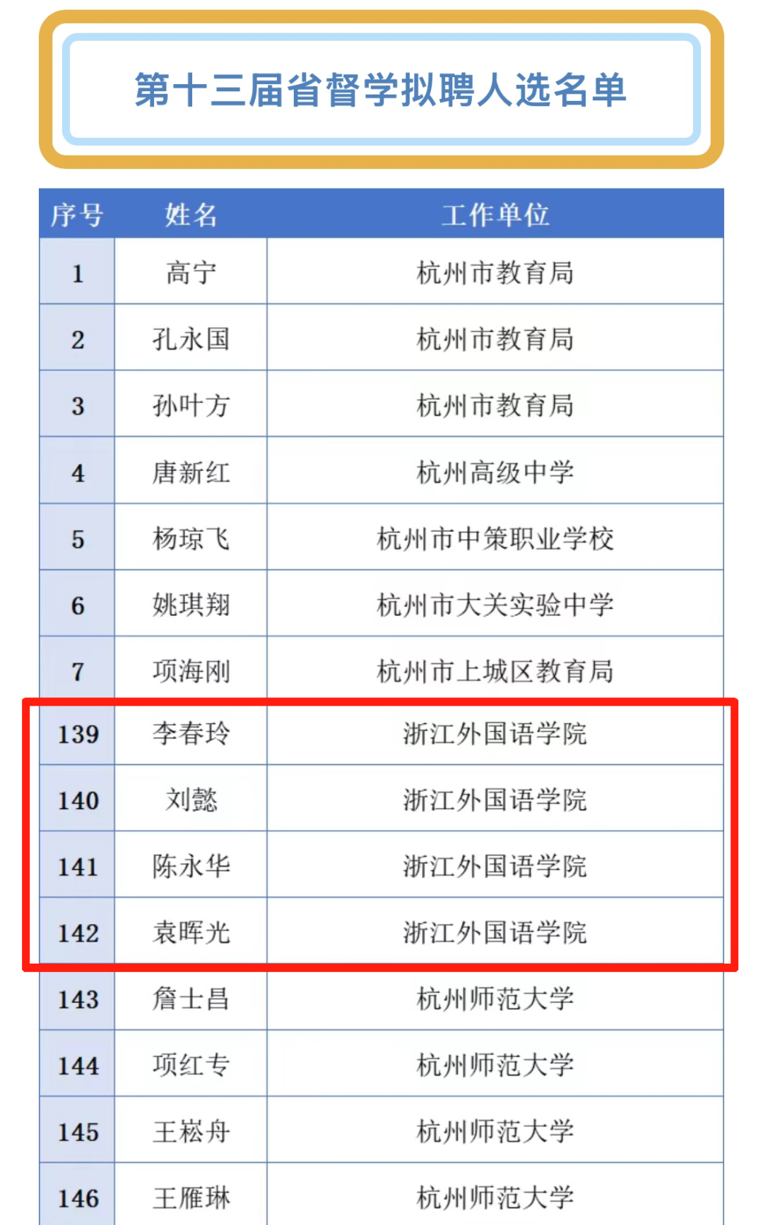 近日,浙江省教育厅公示了第十三届省督学、特约省督学拟聘人选,根据《浙江省教育督导条例》《浙江省省督学聘任办法》和教育督导工作需要,经各方推荐、省教育厅审查,教育学院执行院长袁晖光教授和教育治理研究中心执行主任李春玲教授受聘为第十三届省督学。