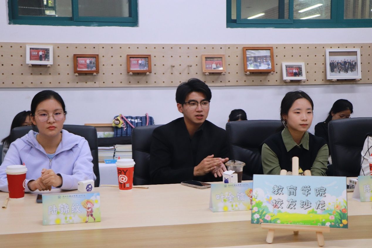 为充分发挥优秀校友的示范引领作用,助力在校学生明确职业发展方向,提升就业能力与综合素质。10月25日,教育学院在望C218举办了校友沙龙,邀请25届小学教育专业校友陆锦纹、叶金镭、刘畅、王梦婕,25届学前教育专业校友潘子瑞,23届数学专业校友陈怡欣返校,与在校生共话“从师范生到教师”的成长之路,为即将踏上讲台的学弟学妹们点亮了一盏引路明灯。 大学时光如何度过,才能为未来的教师之路铺就坚实基础?几位校友结合自身经历,分享了他们的求学经历、求职心得与教育感悟。就职于宁波前湾新区世纪城实验小学的陆锦纹学姐从大二起便坚持每周备课试讲,最终在关键面试中取得试讲第一的成绩;就职于义乌市群星外国语英特小学叶金镭学长分享了自己"偷教室练课"的经历,通过反复研读教材、坚持试讲训练,最终在面试中展现出了从容自信;就职于万马股份的潘子瑞学长讲述了自己从学前教育专业成功转型至企业海外业务领域,有力地证明了师范专业培养的综合素质同样是闯荡其他领域的宝贵财富。 在沙龙互动环节中,同学们从说课技巧、课程学习到职业选择提出了诸多困惑,就职于萧山区南阳初级中学的陈怡欣学姐指出了“曲线救国”的路径——通过竞赛、学生工作、社会实践等提升综测,形成自己的差异化优势;就职于萧山区赭山小学的刘畅学姐建议学弟学妹尽早梳理语文教材中的每一篇课文,连略读课文也不放过;就职于余姚市舜北小学的王梦婕学姐特别提醒要注意教材版本的更新,尽早适应不同地区的教学要求。 “学长学姐们不仅在岗位上站稳脚跟,更愿意回来传递经验,这正是教育的延续性与传承性”,作为几位校友曾经的辅导员,王一博老师也分享了带班感悟,同时她也提醒同学们:“身体健康是第一位的,无论选择哪条路,都要保持良好心态与身体状态。” 愿每一位心怀教育理想的同学,都能在学长学姐的“薪火”照耀下,走出属于自己的“为师之路”。