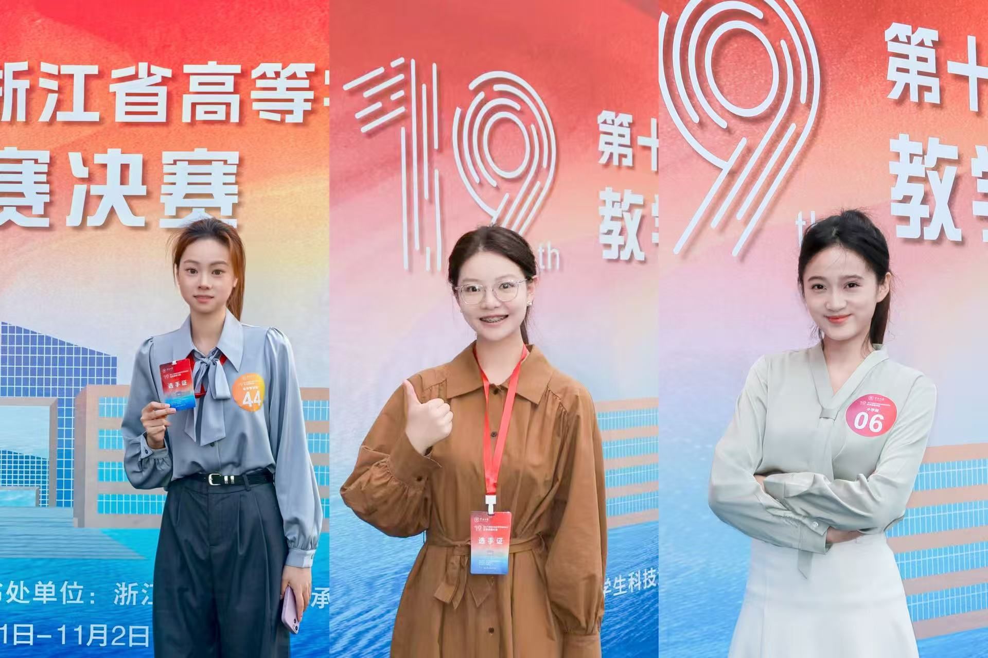 11月1日至2日,第十九届浙江省高等学校师范生教学竞赛决赛在宁波大学落幕。教院学子在指导老师的悉心教导下,凭借扎实的专业功底、精湛的教学技能和良好的综合素养,荣获二等奖3项、三等奖2项、优胜奖2项。 22小教2班邹若凡(左)、22小教1班王欣尔(右) 22科教1班任书妍(左一)、22科教2班李嘉欣(右一) 22数学1班陈应子(左)、22小教4班曹晶晶(中)、 22小教3班单安蜜(右) 备赛期间,参赛学子反复打磨中精进教学技能,在模拟演练中积累实战经验,展现了精益求精的求学态度与奋勇拼搏的精神风貌。未来,学院将持续优化人才培养方案,强化教学技能训练,助力更多学子在师范成长道路上不断突破,续写佳绩!