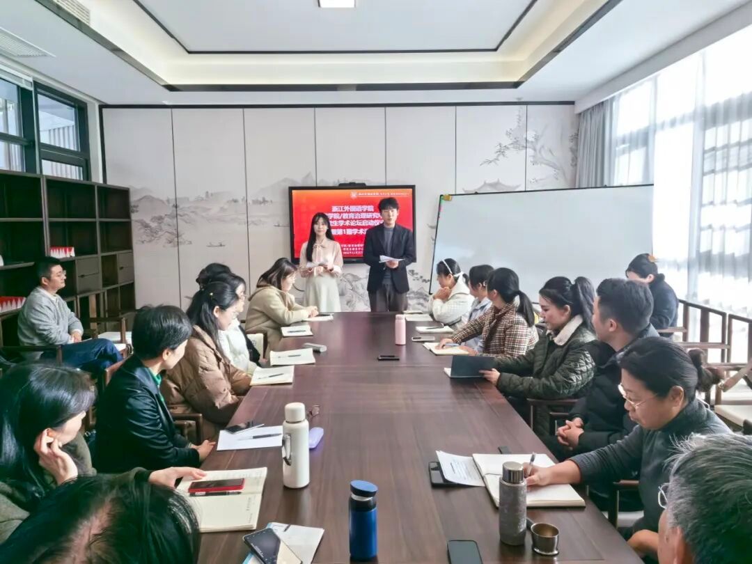近日,浙江外国语学院教育学院/教育治理研究中心研究生学术论坛启动仪式暨第1期学术活动在闻道馆212会议室顺利举行。原校党委书记宣勇教授,教育学院顾问、教育治理研究中心学术委员会主任孙绵涛教授,教育学院执行院长、教育治理研究中心主任袁晖光教授,学院学术副院长陈玉玲教授出席活动。