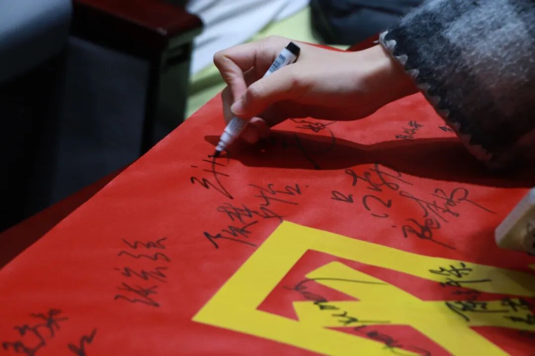 同时,同学们纷纷在诚信考试横幅上签名,这既是对考试的庄严承诺,也是对学习成果的憧憬。