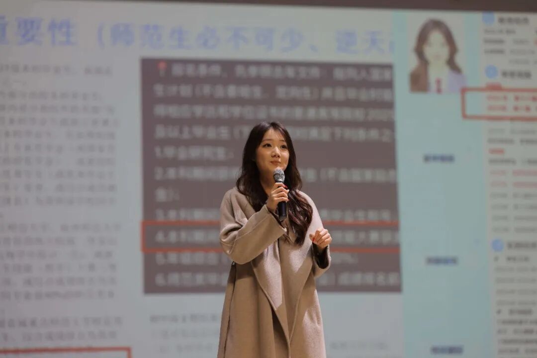 22科教1班任书妍和23小教1班冯悦作为学生代表,分享了自己参与师范生技能大赛和学科竞赛相关的经历,鼓励同学们早作准备,树立信心并充分抓住机会去大胆磨炼、厚积薄发。