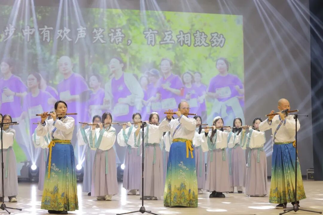 萤火虫晨跑队持笛登台,悠扬笛音婉转流淌,时而轻柔似春日和风,时而明快若夏日蝉鸣,以传统民乐勾勒出四季更迭的美好画卷,余韵悠长。