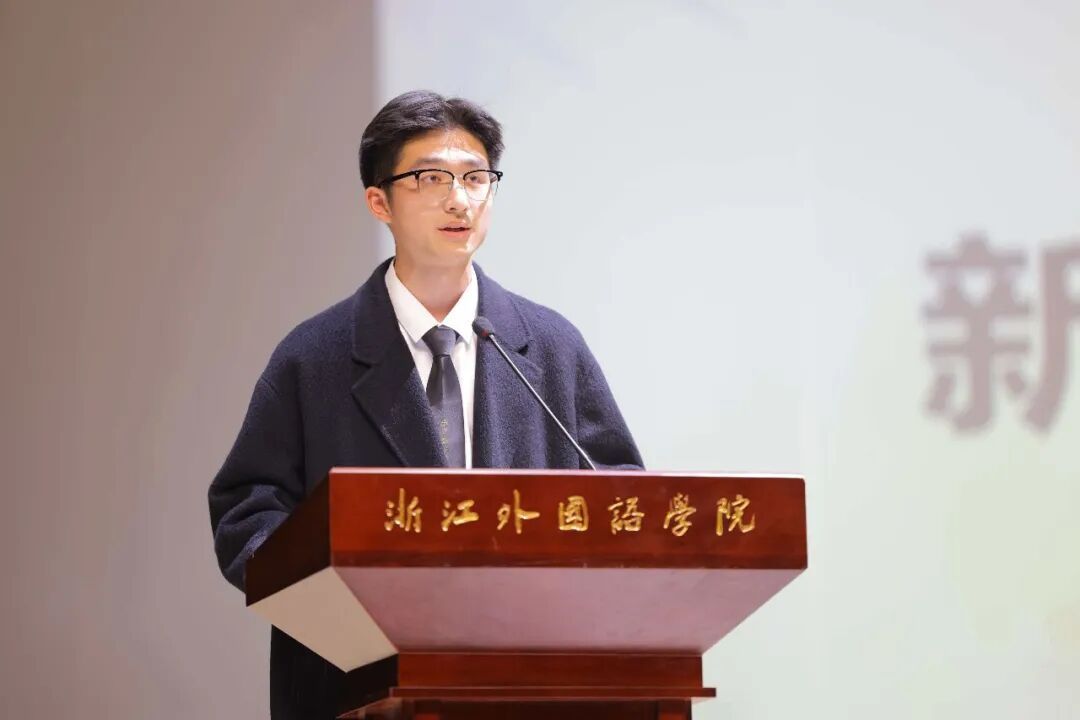 新生代表25科教1班吕勃作励志宣言,希望教院学子践行行知精神,与老师们一同探索教育的真谛,与同学们并肩前行、教学相长,书写属于教院的青春篇章。