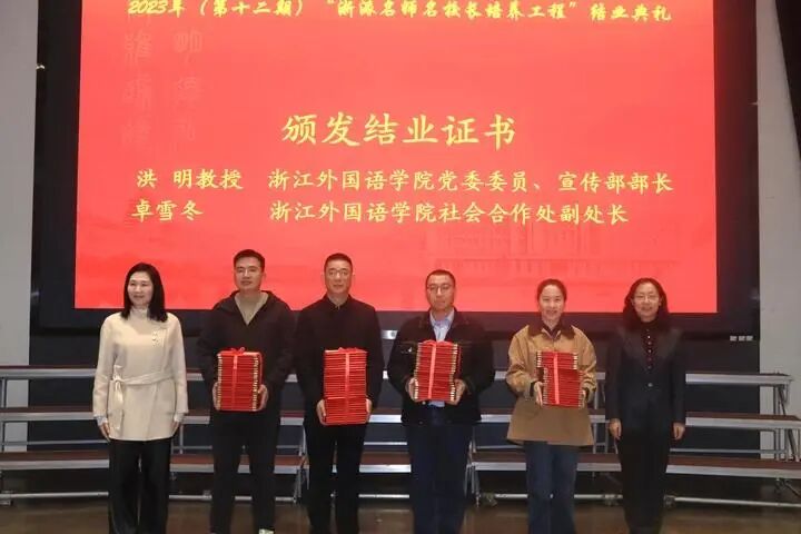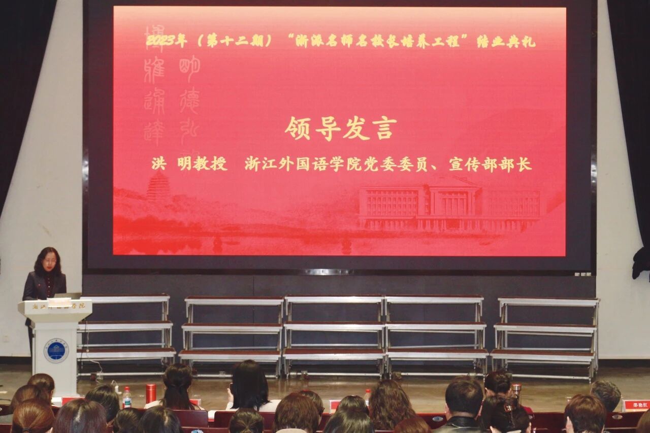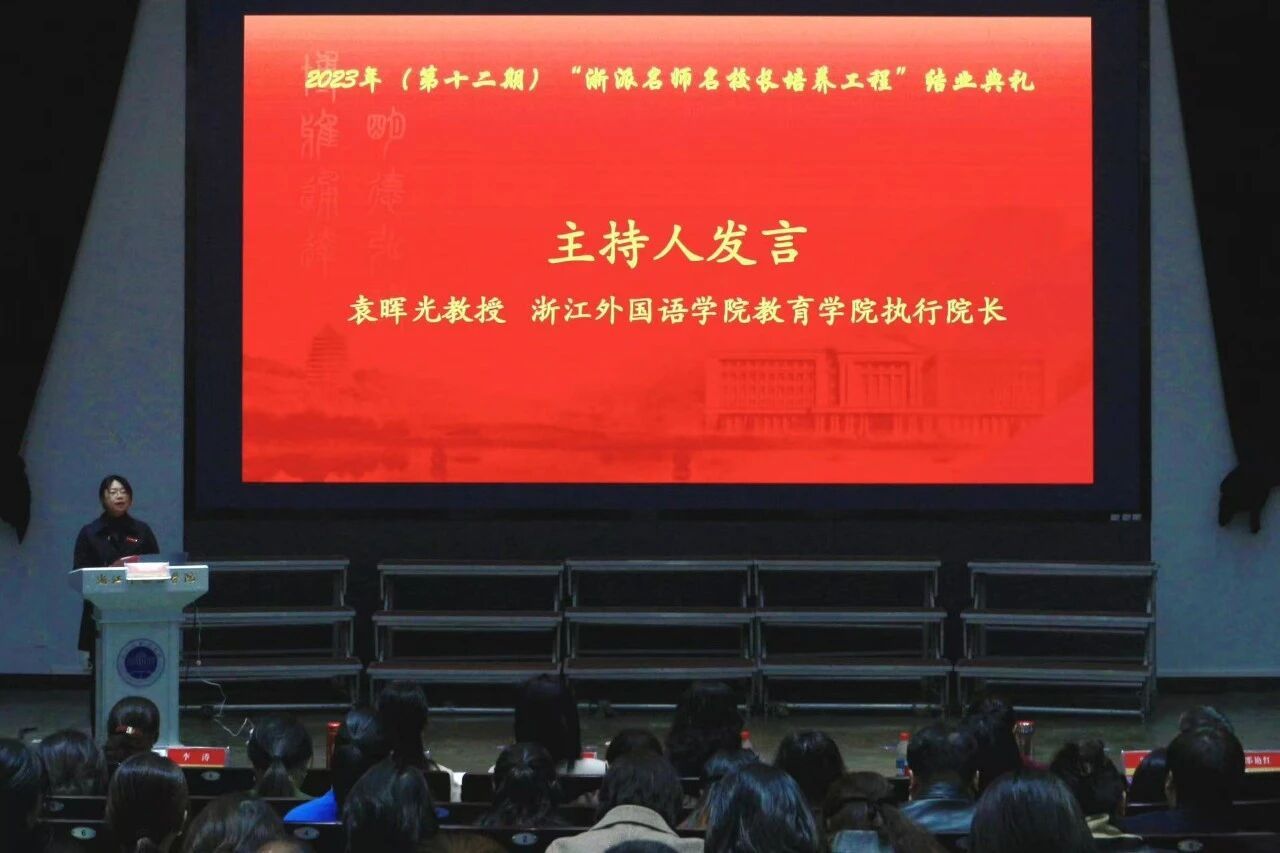 12月19日,浙外举办第十二期“浙派名师名校长培养工程”成果汇报暨结业典礼,学校党委委员、宣传部部长洪明出席活动并讲话,社会合作处副处长卓雪冬参加活动并一道颁发结业证书。教育学院执行院长袁晖光主持结业典礼。