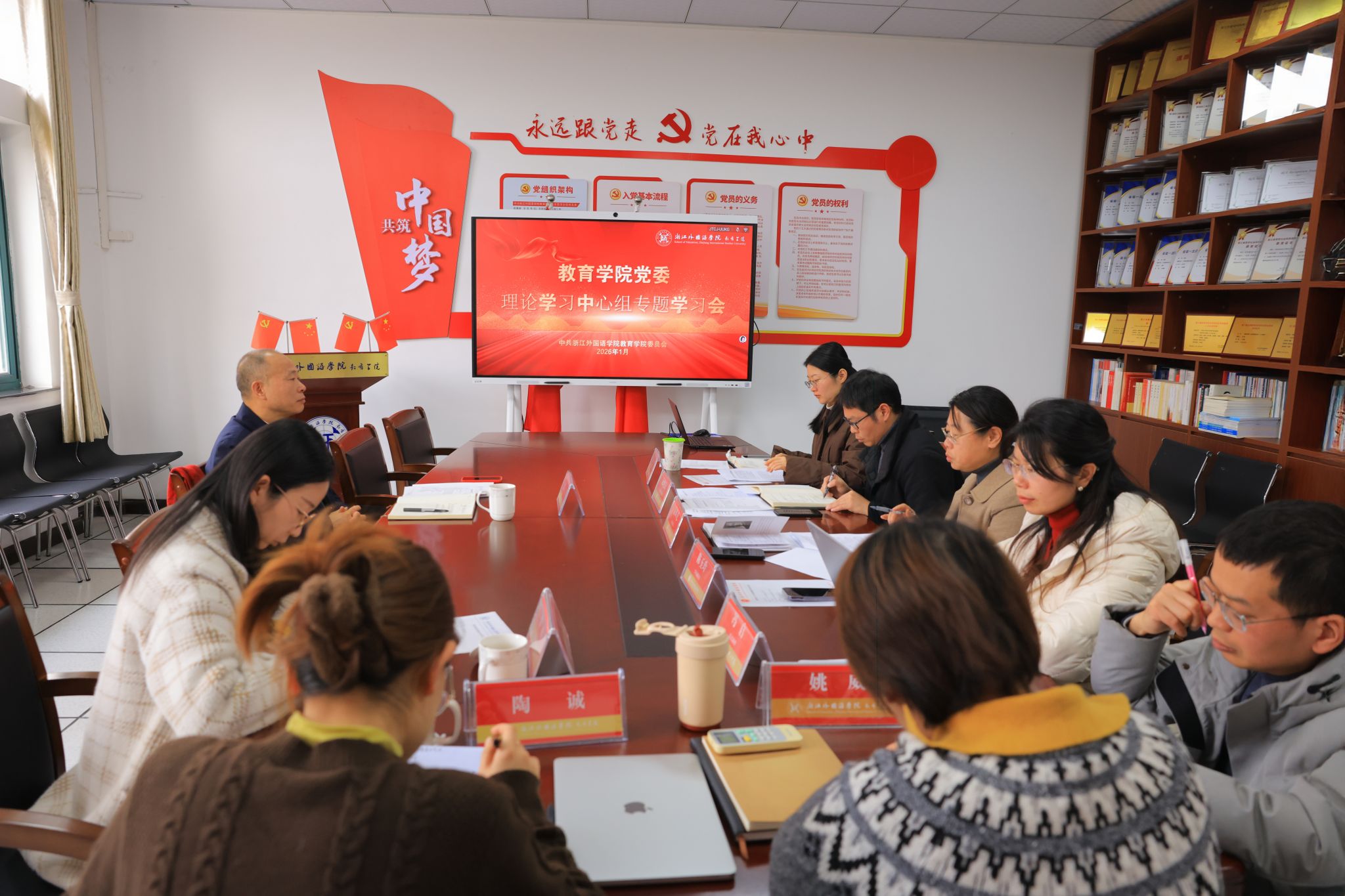 1月6日,教育学院党委理论学习中心组召开专题学习会,聚焦学习好贯彻好党的二十届四中全会精神、习近平总书记关于人工智能、统计工作重要讲话和重要指示批示精神等专题作了集中学习。副校长、党委委员张梁到会巡听旁听,学院党委书记阮建苗主持会议。