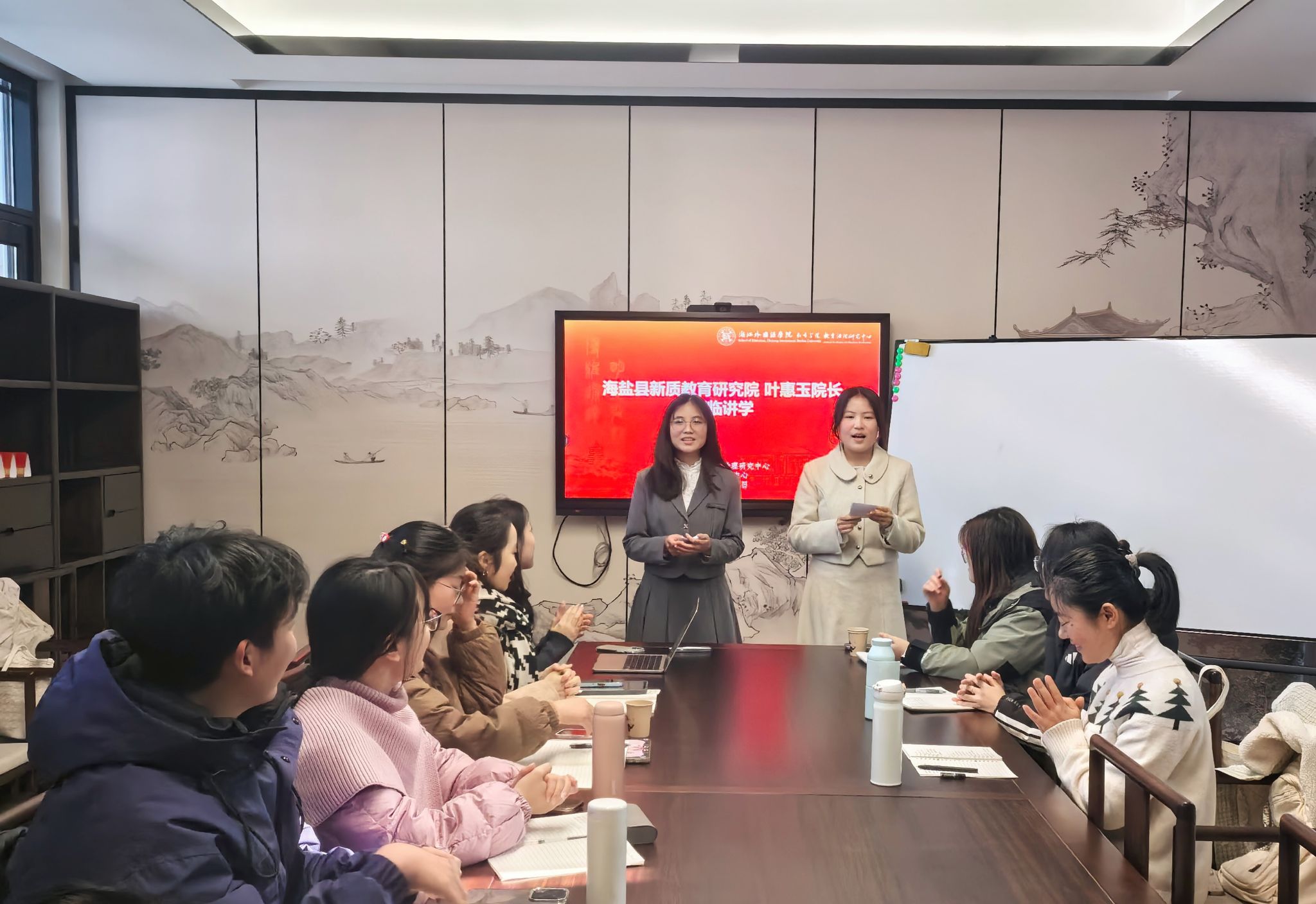 近日,浙江外国语学院教育学院/教育治理研究中心研究生第2期学术论坛在闻道馆212会议室举行。本次论坛特邀海盐县新质教育研究院院长、县教育局原副局长叶惠玉作专题讲座,教育学院顾问、教育治理研究中心学术委员会主任孙绵涛教授,部分研究生导师及全体研究生出席活动。
