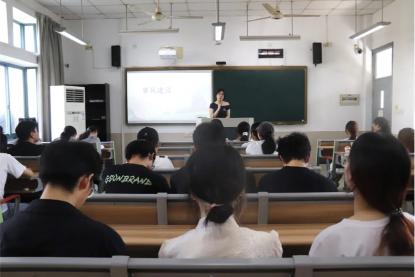 最后,俞贝老师为班委们提出班级管理与学风建设的建议。她指出,班委需进行高效的信息阅读与精准的信息提取,整合提炼繁杂信息后再传达,以确保同学准确理解、高效执行;更要以责任心落实每一项工作,用主动作为扛起班级管理的重任。同时,提醒班委把握军训契机,多与同学互动熟悉,为班级凝聚力打基础。