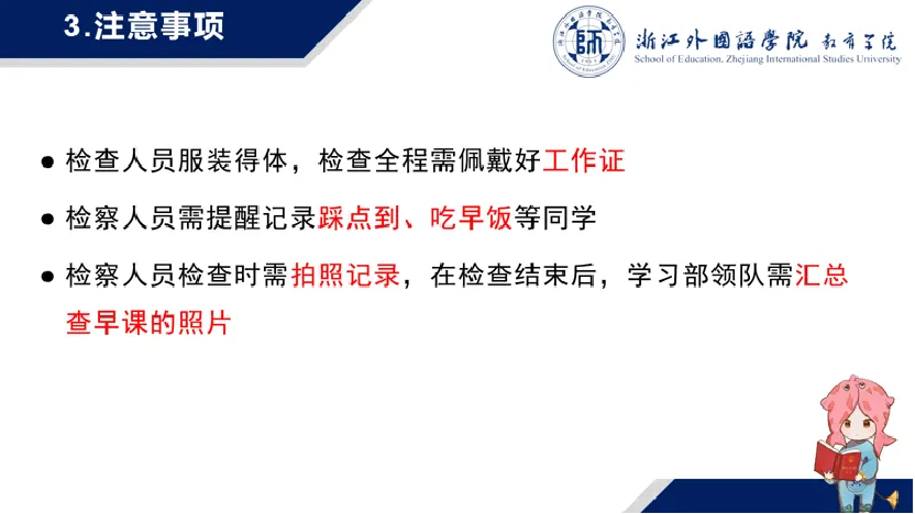为进一步加强教育学院学风建设,聚焦审核评估工作,教育学院自律委员会联动党员先锋力量,于近日在望C108召开早课检查会议。