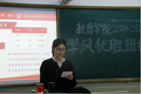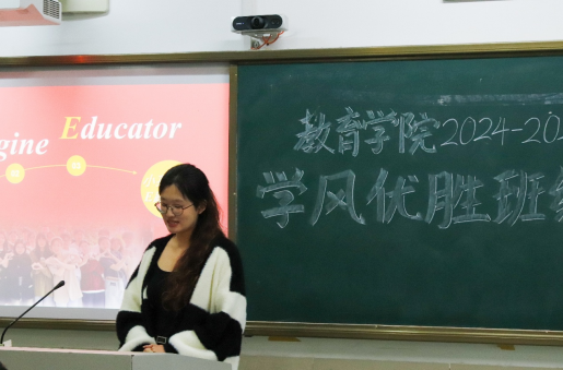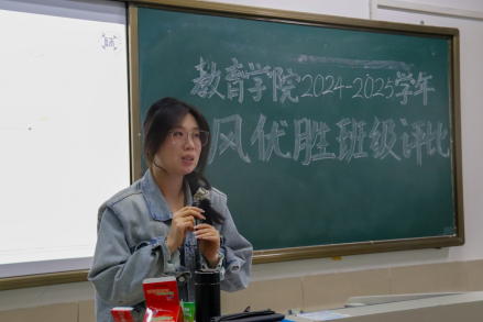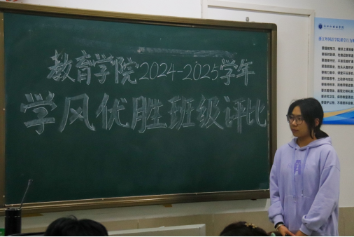 为进一步加强教育学院学风建设,增强班级凝聚力,为学校高质量通过本科教育教学审核评估贡献力量,树立优良学风典范,教育学院近日举办了2024—2025学年学风建设优胜班级评选活动。优秀班主任代表高原、王佳,团委副书记王一博、陈志钢,院自律指导老师俞贝担任评委。参赛班级代表和25级各班班委等60余人参与本次评比活动。