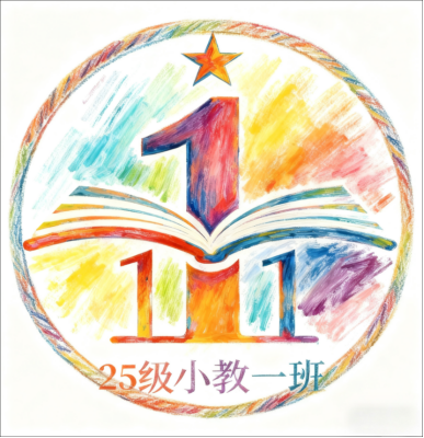 班级寓意和理念:“星耀书海”,呼应班徽上方的星星与中间翻开的书本,寓意班级如星光般照亮知识海洋,体现小学教育专业对知识探索的敬畏与热情;“‘1’心向教”,紧扣班徽里立体的“1”,既代表“1班”的凝聚一心,也传递出全体同学专注投身小学教育事业的坚定志向;“逐光而耀”,既指追随“星星”象征的教育理想之光,也喻指班级将在成长中绽放光彩。