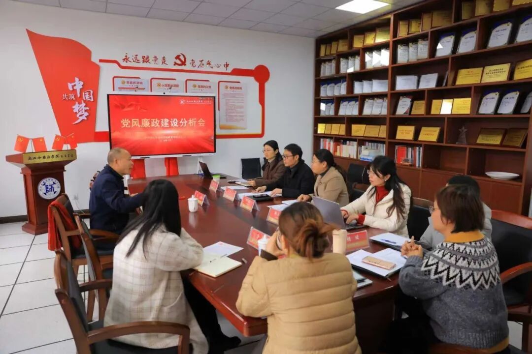 阮建苗书记代表学院党委作2025年度党风廉政建设情况分析报告,全面回顾了学院在坚持和加强党的全面领导方面取得的成效,在教育教学、科研创新、社会服务等方面取得的新的突破,重点分析了巡视整改存在的问题,系统梳理当前工作中存在的廉政风险点和薄弱环节,提出了下一步工作任务。班子成员结合各自职责分工,对照党风廉政建设相关要求,逐一开展分析研判,明确整改举措。阮建苗书记表示,学院党委始终坚持把党风廉政建设摆在突出位置,持续压实主体责任,深化纪律教育,强化日常监督,努力营造风清气正的育人环境。