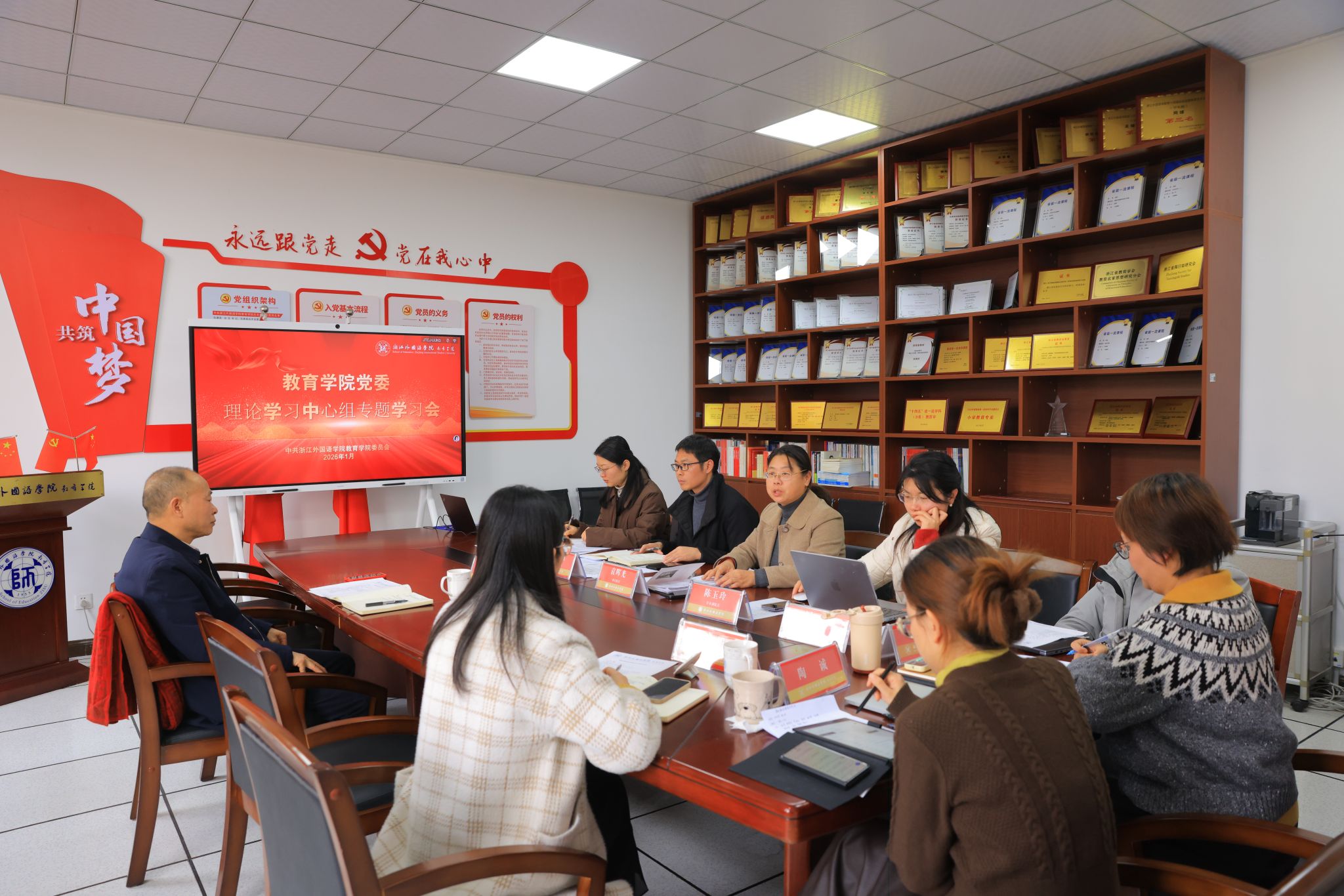 近日,教育学院党委召开理论学习中心组学习会。副校长、党委委员张梁出席并作领学。理论学习中心组全体成员参加,学院党委书记阮建苗主持会议。