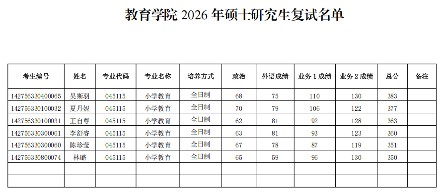 现将我院2026年硕士研究生招生一志愿考生复试名单公布如下。我院一志愿复试时间拟于3月28日进行,请参加我校复试的考生按照《浙江外国语学院2026年硕士研究生招生复试考生须知》做好准备。